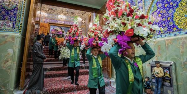 خادمان امام رضا (ع)، حرم کربلا را گلآرایی کردند+عکس و فیلم