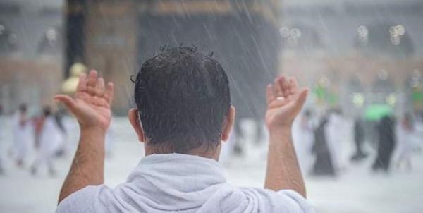 دعاخوانی زائران خانه خدا در هوای بارانی مسجدالحرام +فیلم